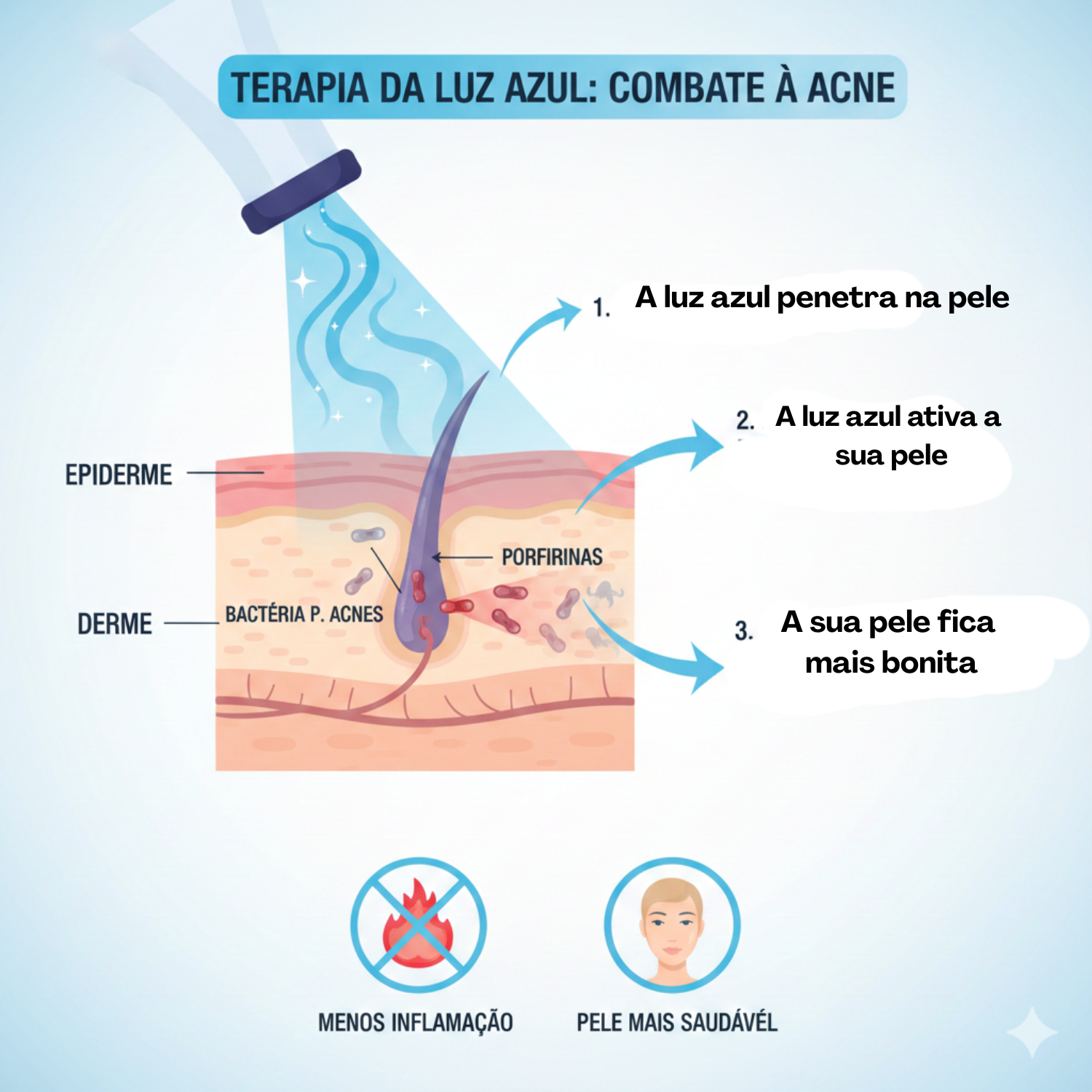 Ela utiliza luzes suaves que ajudam a equilibrar oleosidade, suavizar imperfeições e deixar o rosto com aquela sensação de pele mais macia e bem cuidada.